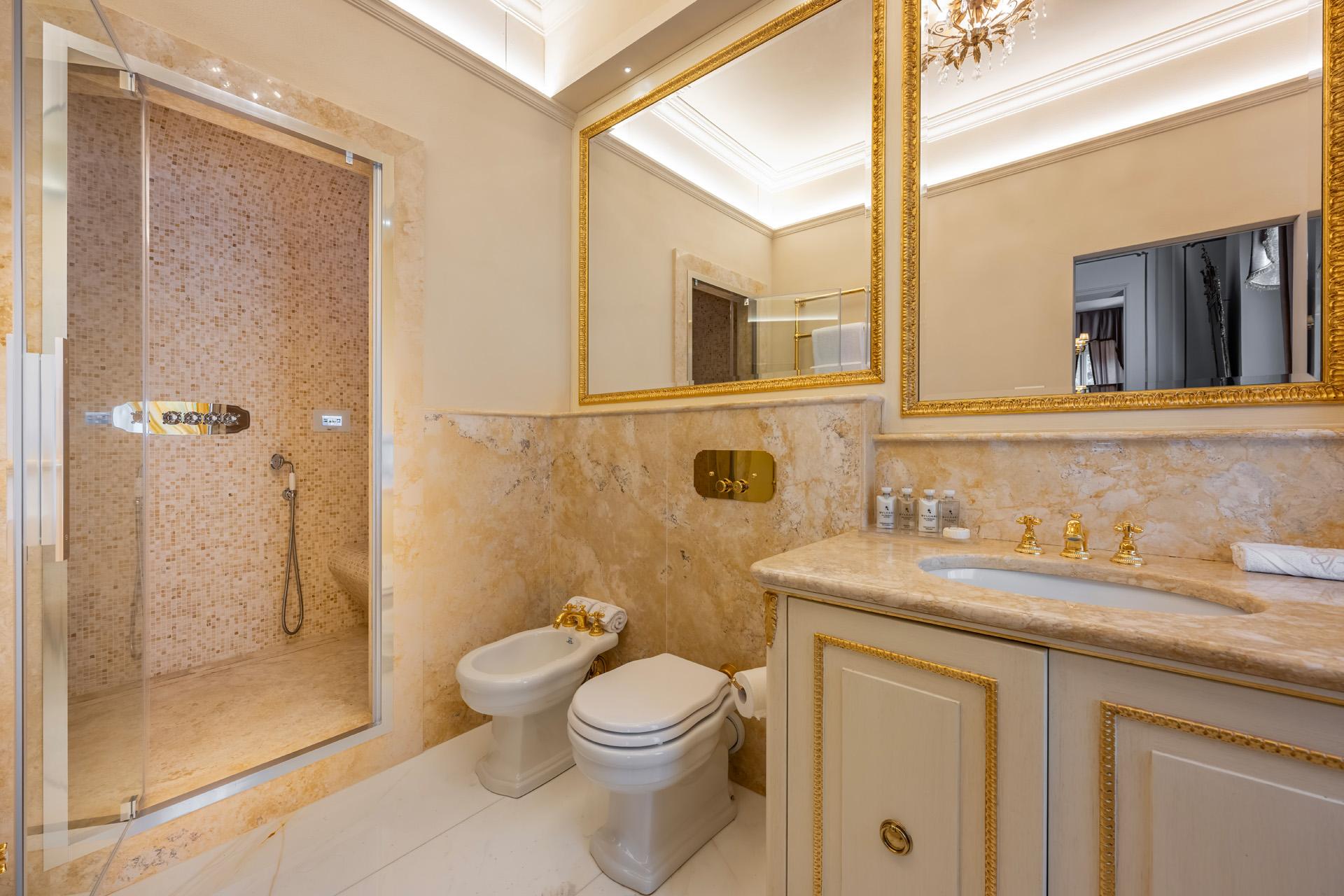 The luxury bathroom is characterized by a private spa with an hammam and steaming bath, a big shower and fine beauty desk. Highly recommend for guests dreaming a luxury and romantic escapes.